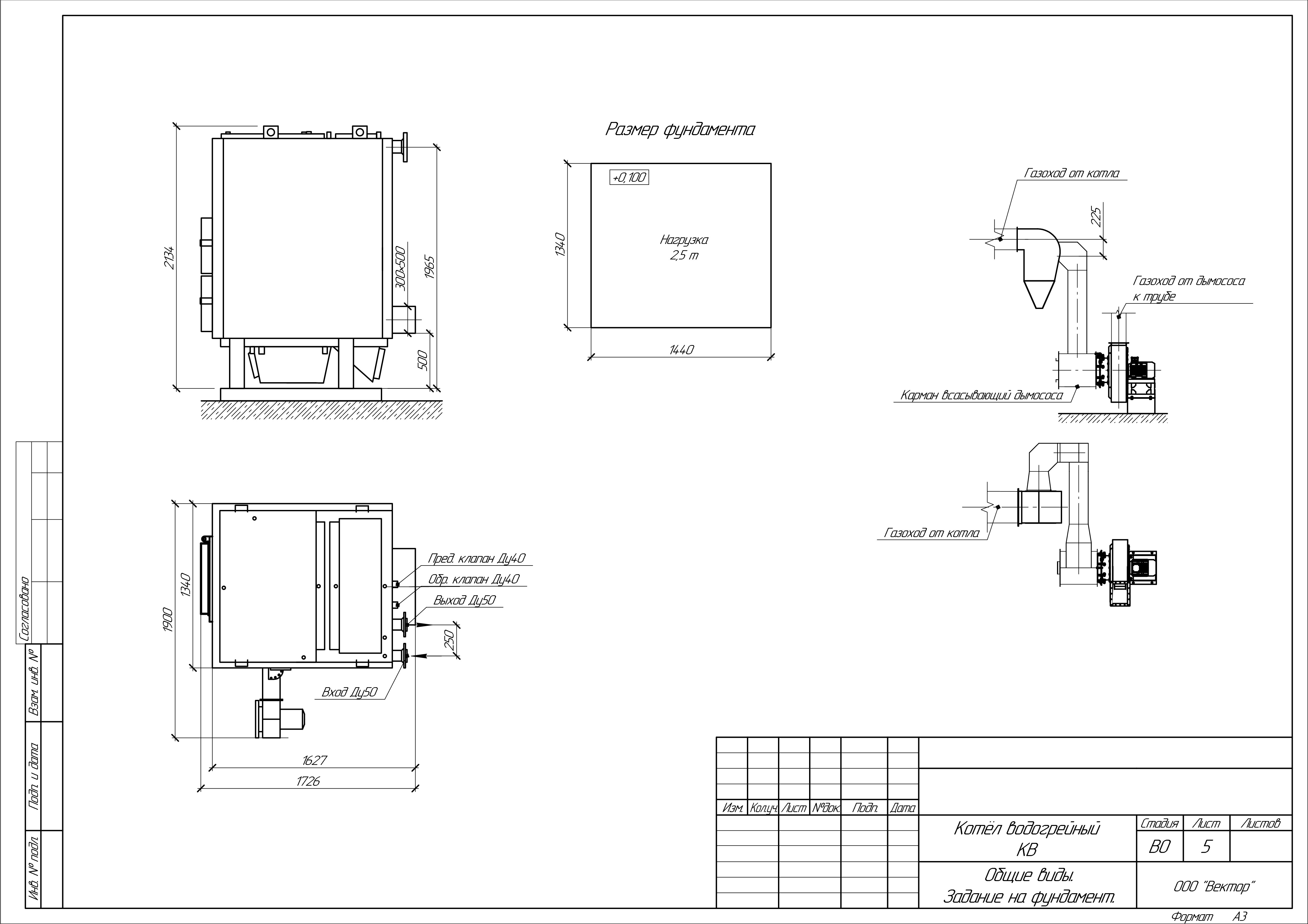 Котел КВм-0.25 на угле с топкой ТЛЗМ, где: